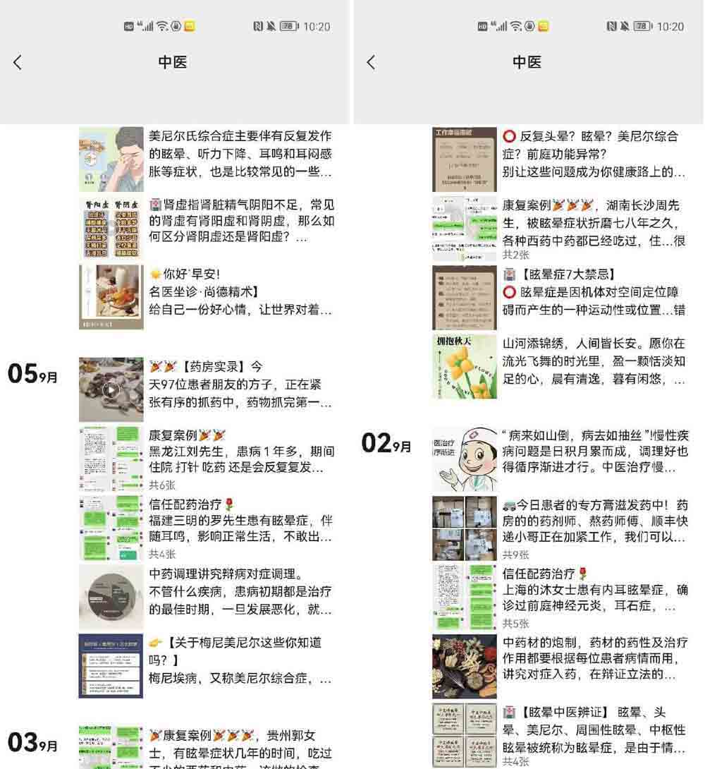 (这是我在曹大夫的微信朋友圈截的图,每天都会有中医养生眩晕知识和其他病友的治疗记录)